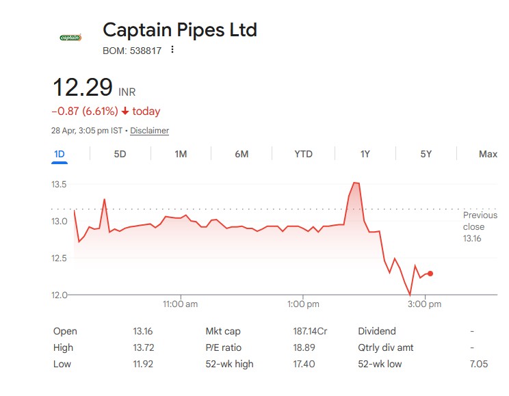 Captain Pipes Ltd – स्टॉक विवरण (28 अप्रैल 2026)