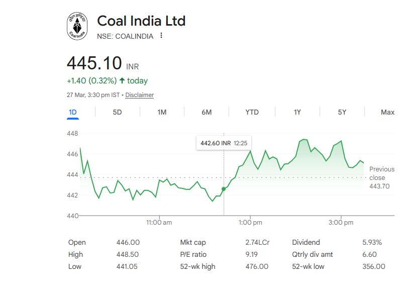 Coal India Ltd – स्टॉक जानकारी (27 मार्च 2026)