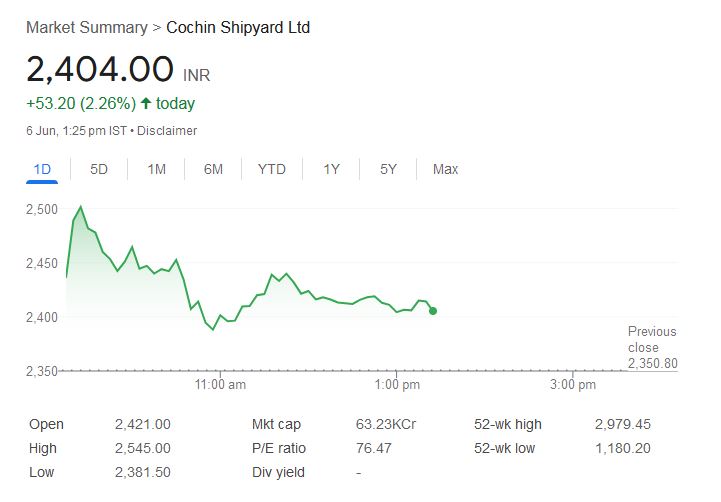 - 3 दिनों में कोचिन शिपयार्ड का शेयर 32% चढ़ा।