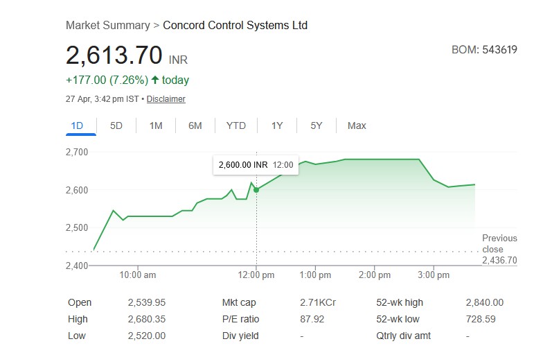 Concord Control Systems Ltd (BOM: 543619) – स्टॉक डिटेल्स