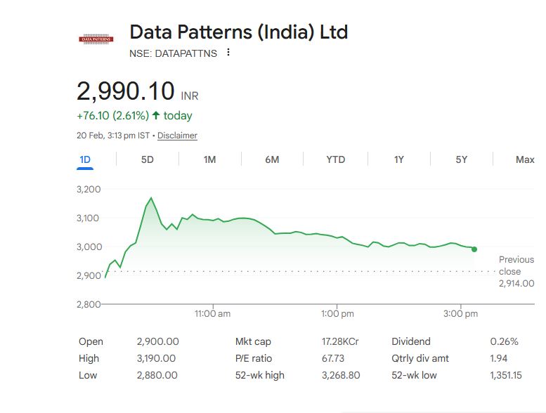 Data Patterns (India) Ltd – शेयर जानकारी (20 फरवरी 2026)
