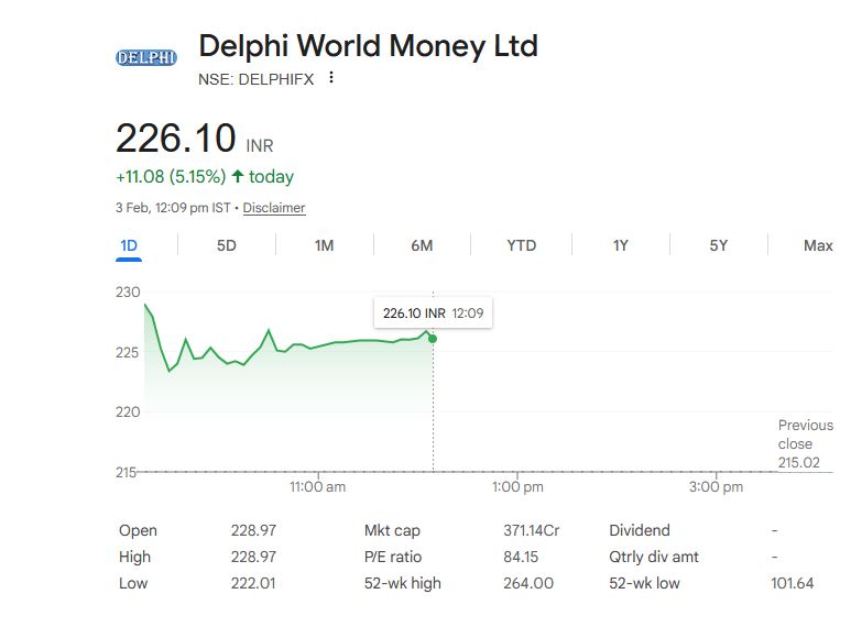 Delphi World Money Ltd – आज का शेयर डेटा