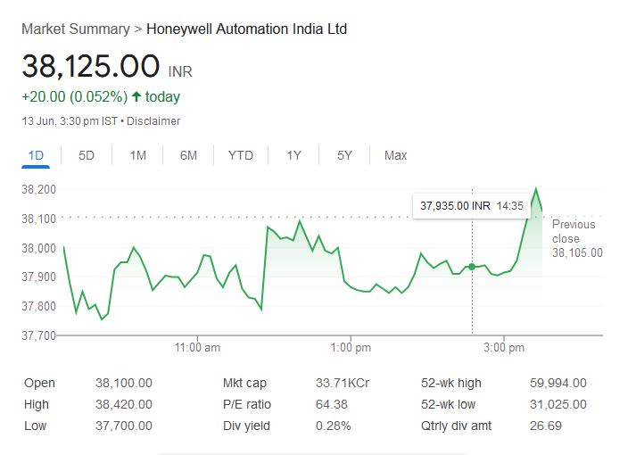 13 जून 2025 को शेयर बीएसई पर 38,125 रुपये पर बंद हुआ। कंपनी का मार्केट कैप 33,710 करोड़ रुपये है। पिछले 3 महीनों में इसके शेयर में 13% की तेजी आई है, लेकिन सालभर में यह 30% गिर गया है। इसके बाद भी कंपनी के मजबूत डिविडेंड और फाइनेंशियल्स से निवेशकों की काफी दिलचस्पी बनी हुई है।