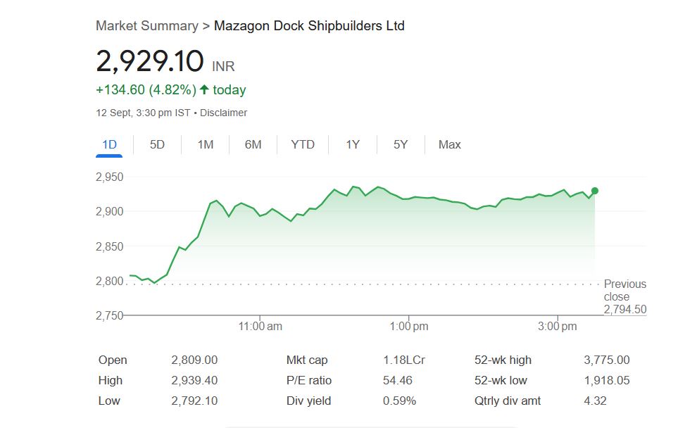 Dividend Stocks: डिफेंस सेक्टर की प्रमुख कंपनी मझगांव डॉक शिपबिल्डर्स लिमिटेड (Mazagon Dock Shipbuilders ltd) एक बार फिर निवेशकों को डिविडेंड का तोहफा देने जा रही है। कंपनी ने पिछले 3 सालों में अपने शेयरधारकों को 1265 प्रतिशत से ज्यादा का जबरदस्त रिटर्न दिया। अब एक बार फिर इसके शेयर इस हफ्ते एक्स-डिविडेंड ट्रेड करेंगे।