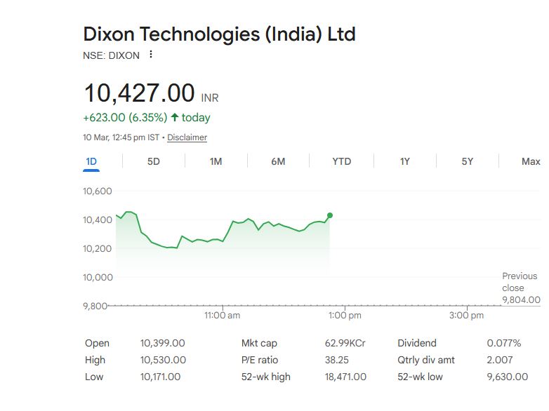 Dixon Technologies (India) Ltd – स्टॉक अपडेट (10 मार्च 2026)