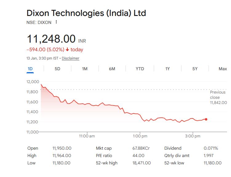 Dixon Technologies (India) Ltd के शेयर की जानकारी (13 जनवरी 2026)