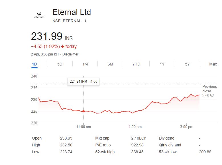 Eternal Ltd – स्टॉक जानकारी (02 अप्रैल 2026)