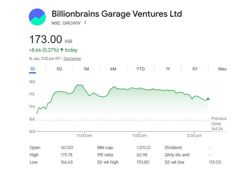 - ग्रो का शेयर शुक्रवार को ₹179.78 तक पहुंचा।