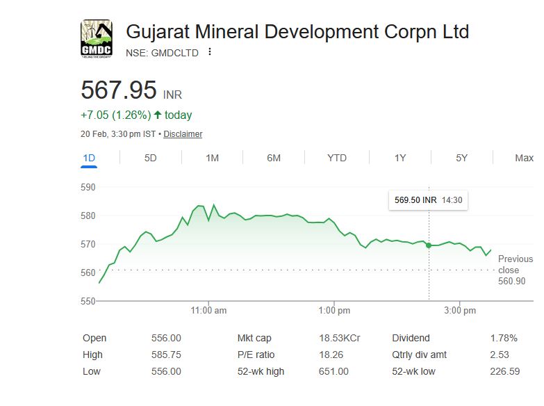 - GMDC के शेयर 20 फरवरी को 3.5% बढ़े।