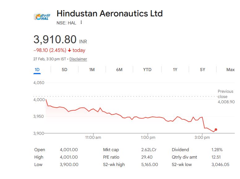 Hindustan Aeronautics Ltd – स्टॉक जानकारी