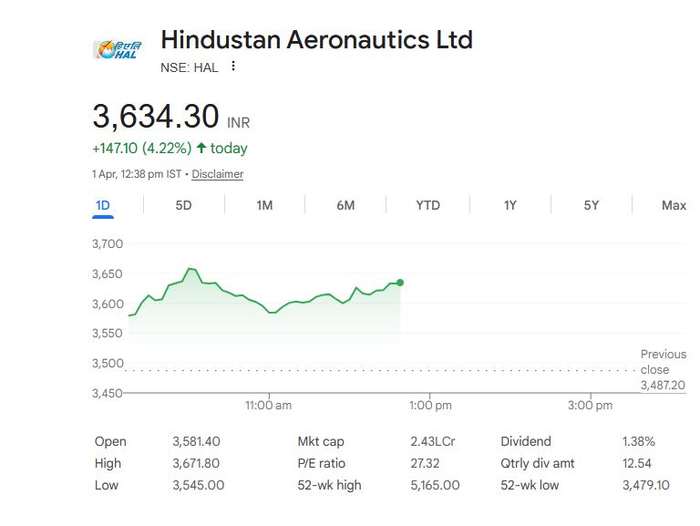 Hindustan Aeronautics Ltd (HAL) शेयर डेटा – (1 अप्रैल 2026)