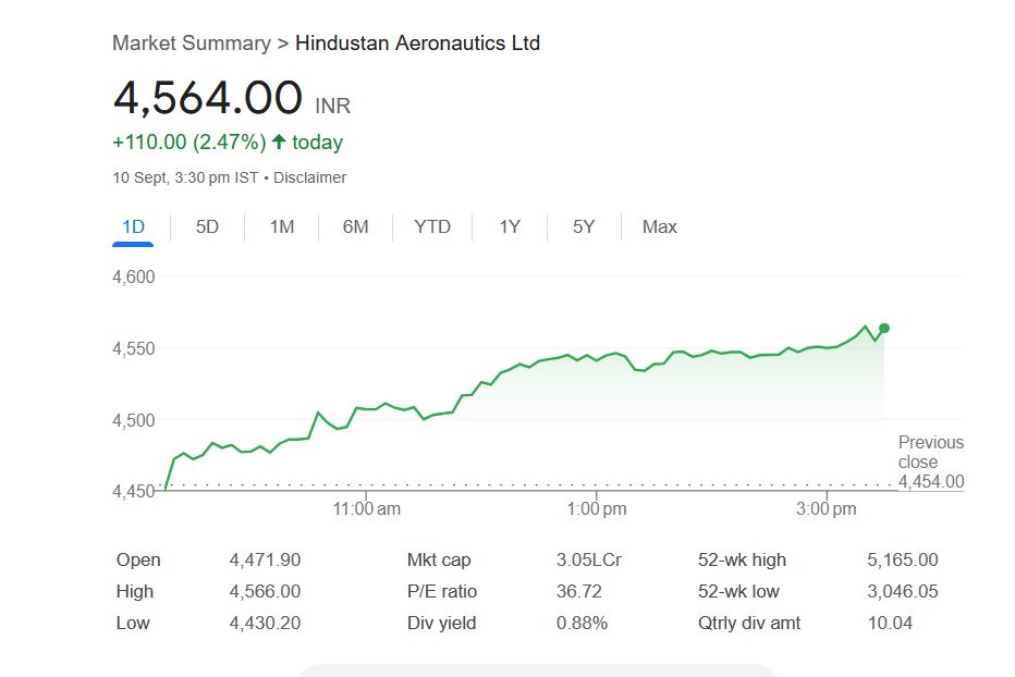 हिंदुस्तान एरोनॉटिक्स लिमिटेड शेयर लेटेस्ट अपडेट (10 सितंबर 2025)