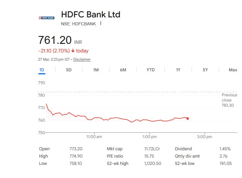 HDFC Bank Ltd – Stock Details (27 Mar 2026)