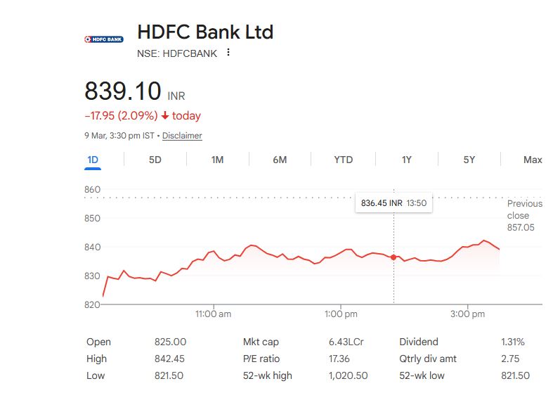 HDFC Bank – स्टॉक विवरण (09 मार्च 2026)