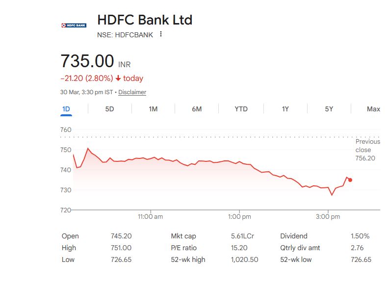 HDFC Bank Ltd – Share Details (30 March 2026)