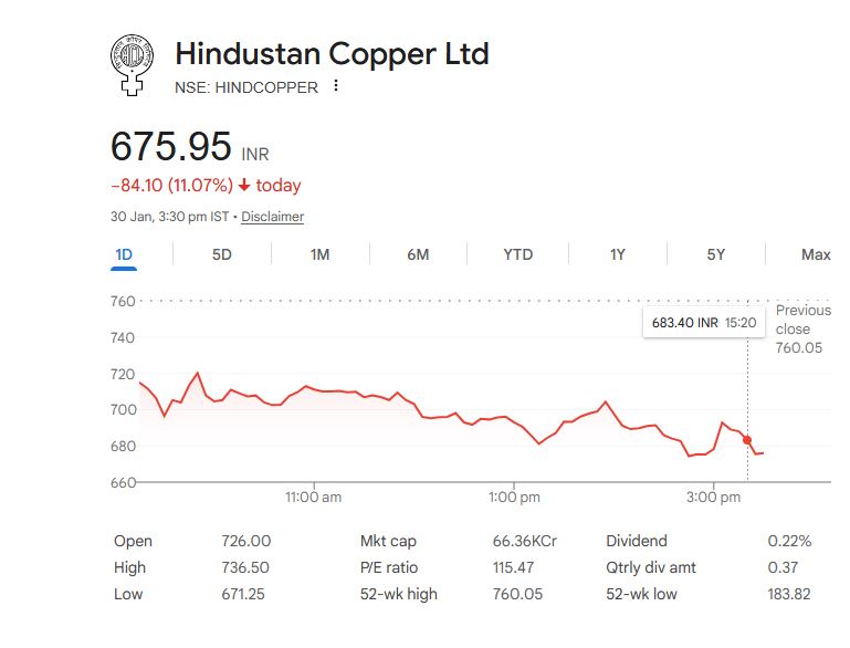 Hindustan Copper Ltd – शेयर जानकारी (30 जनवरी 2026)