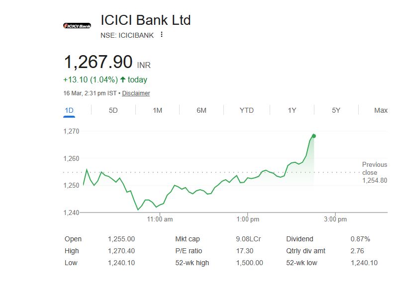 ICICI Bank Ltd स्टॉक अपडेट (16 मार्च 2026)