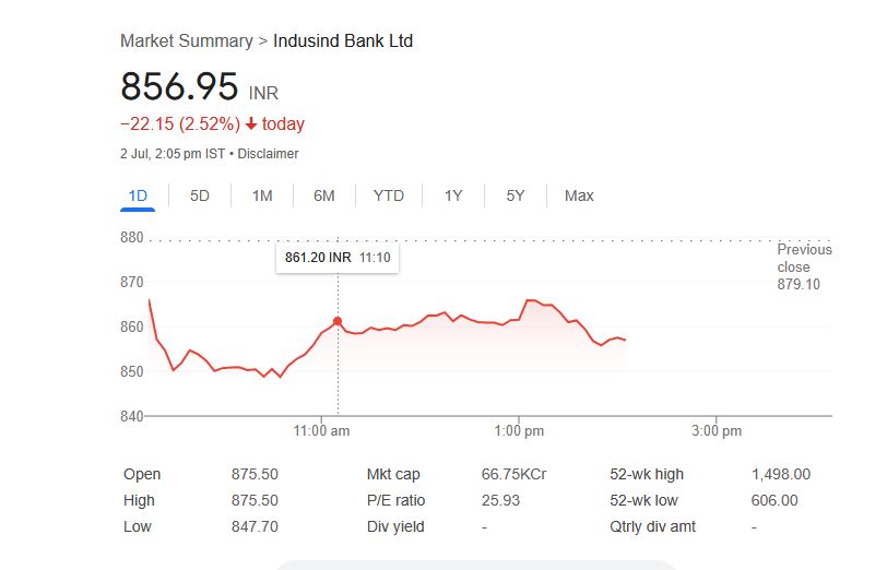 Indusind Bank Share Price: बुधवार, 2 जुलाई 2025 को इंडसइंड बैंक के शेयरों में जोरदार गिरावट देखी गई है, जब गोल्डमैन सैक्स ने अपनी एक रिपोर्ट में बैंक को लेकर टिप्पणियां कीं थी। रिपोर्ट के अनुसार, हालिया विवादों ने बैंक की ब्रांड को नुकसान पहुंचाया है, जिससे इसकी ग्रोथ पर असर दिखाई दे रहा है।