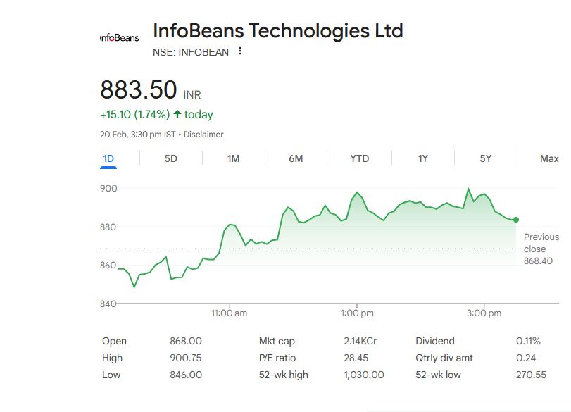 InfoBeans Technologies Ltd – शेयर प्राइस डिटेल्स (20 फरवरी 2026)
