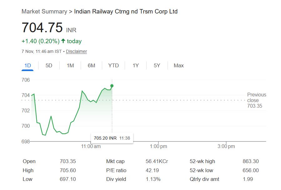 IRCTC शेयर जानकारी (7 नवंबर, 2025)