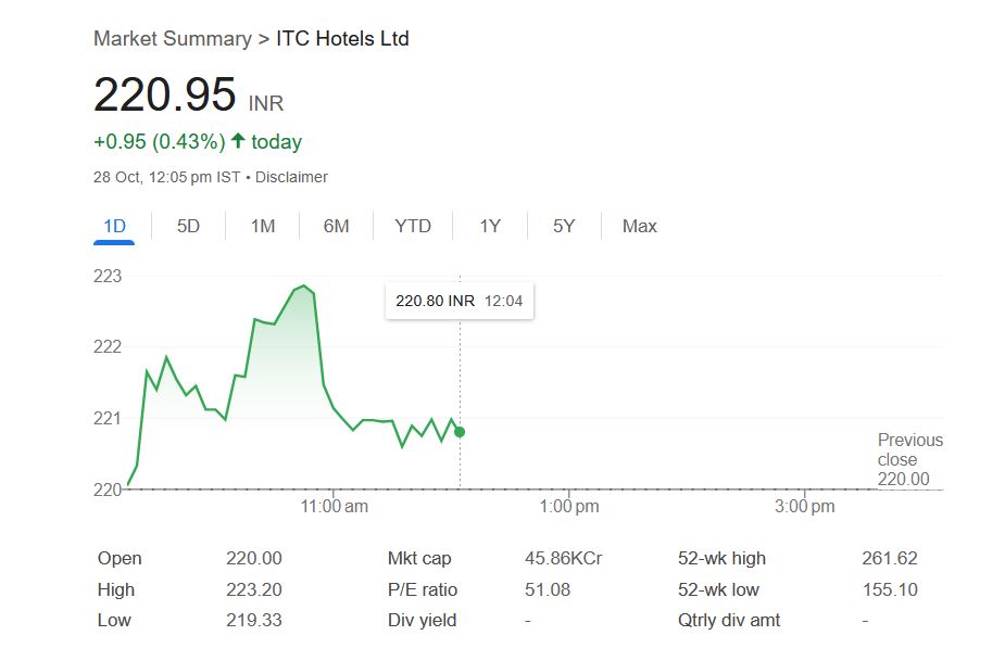 ITC Hotels Ltd – Market Summary (28 Oct, 12:05 PM IST)