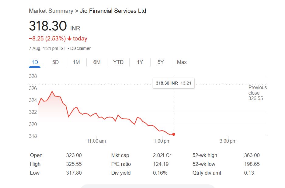 जियो फाइनेंस के शेयर में 2.53% की बड़ी गिरावट