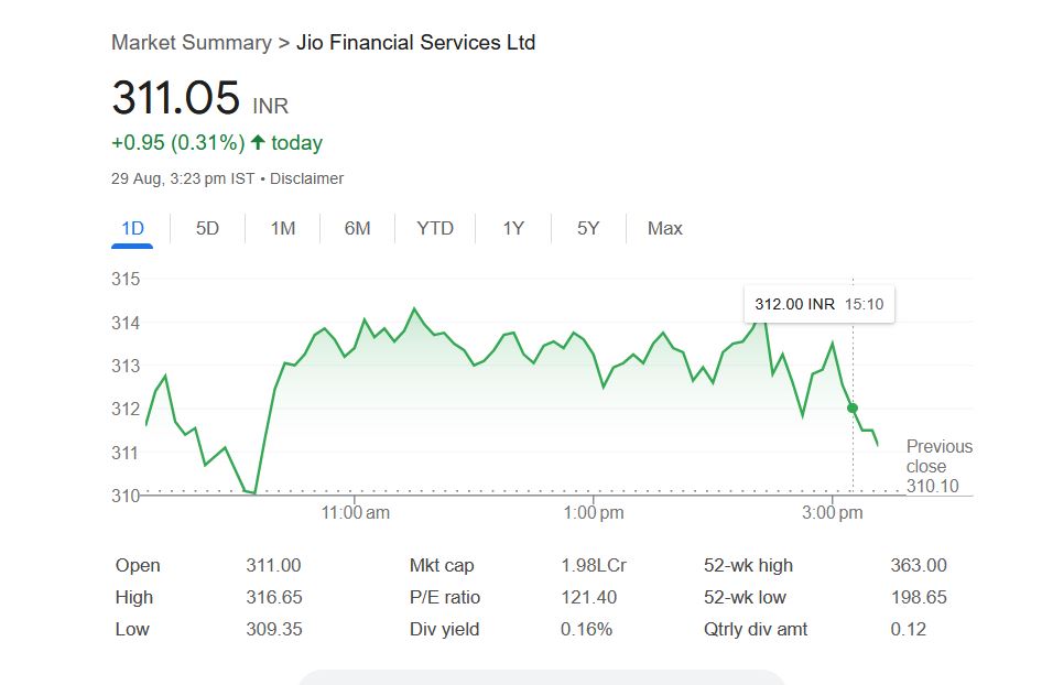 Jio Financial Services Ltd – Market Summary (29 Aug 2025)