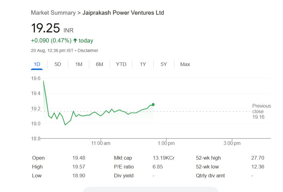 Jaiprakash Power Ventures Ltd – Market Summary (20 अगस्त 2025)