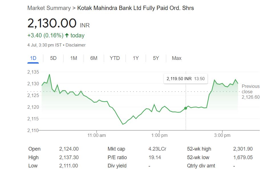 - कोटक बैंक का शेयर ₹2.40 से ₹2130 तक पहुंचा - 88,650% का तगड़ा रिटर्न