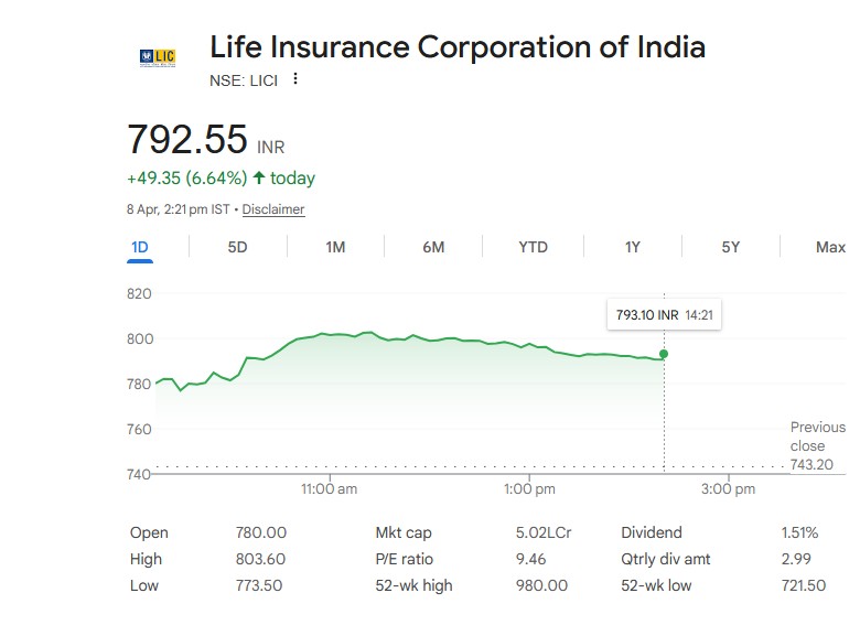 Life Insurance Corporation of India (LIC) – डेटा अपडेट (8 अप्रैल 2026)
