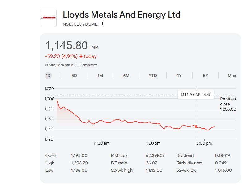 Lloyds Metals And Energy Ltd के शेयर की ताजा जानकारी