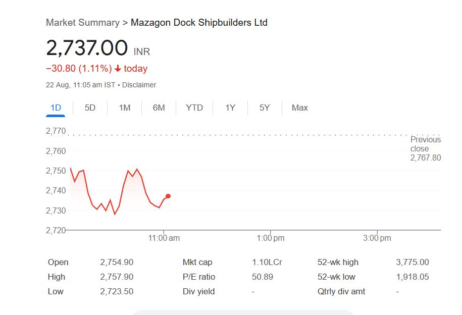 Mazagon Dock Shipbuilders Ltd – Market Summary (22 Aug 2025)