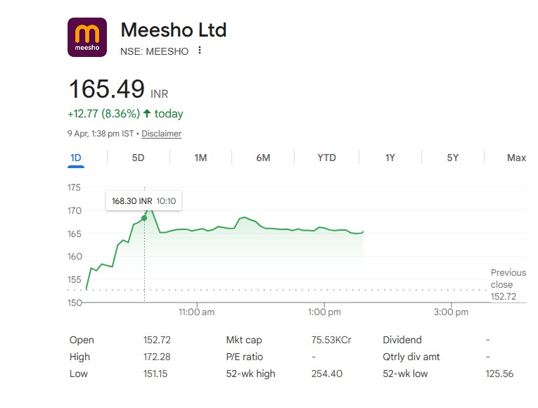 Meesho Ltd – आज का स्टॉक डेटा (9 अप्रैल 2026)