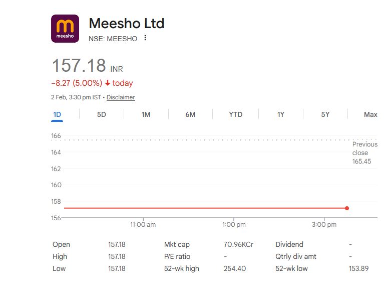Meesho Ltd – स्टॉक डेटा (2 फरवरी 2026)
