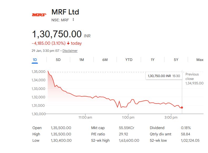 MRF Ltd – शेयर डिटेल्स (29 जनवरी 2026)