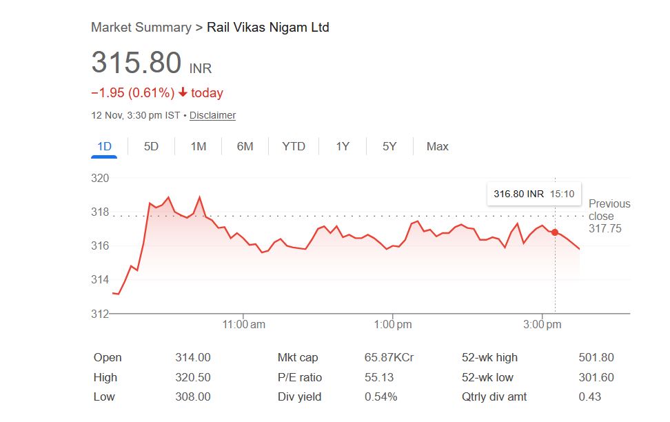 Market Summary – Rail Vikas Nigam Ltd (RVNL)