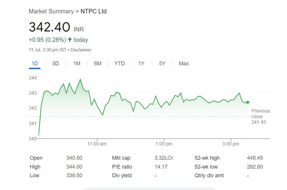 - NTPC का शेयर शुक्रवार को ₹342.40 पर बंद हुआ।