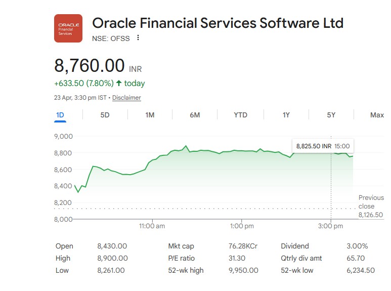 Oracle Financial Services Software Ltd – स्टॉक सारांश (23 अप्रैल 2026)