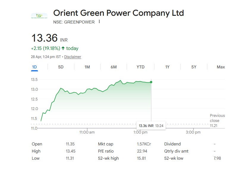 Orient Green Power Company Ltd – स्टॉक जानकारी (28 अप्रैल 2026)