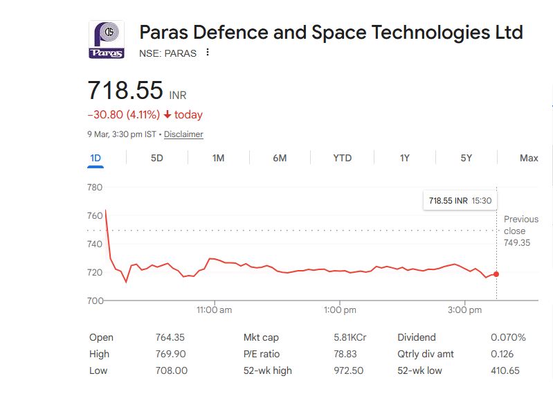 Paras Defence and Space Technologies Ltd – आज का स्टॉक डेटा