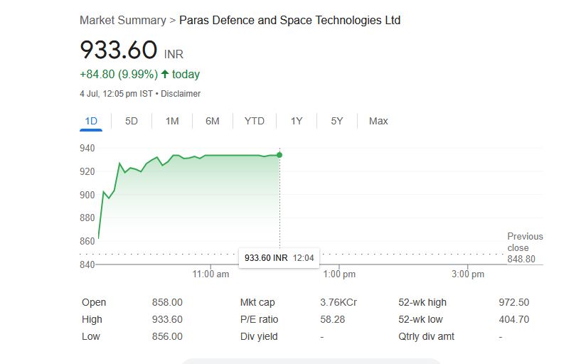 Paras Defence Share Price: आज निवेशकों को मालामाल बनाएगा इस डिफेंस कंपनी का शेयर, एक ही दिन में लाखों कमाने का आया मौका