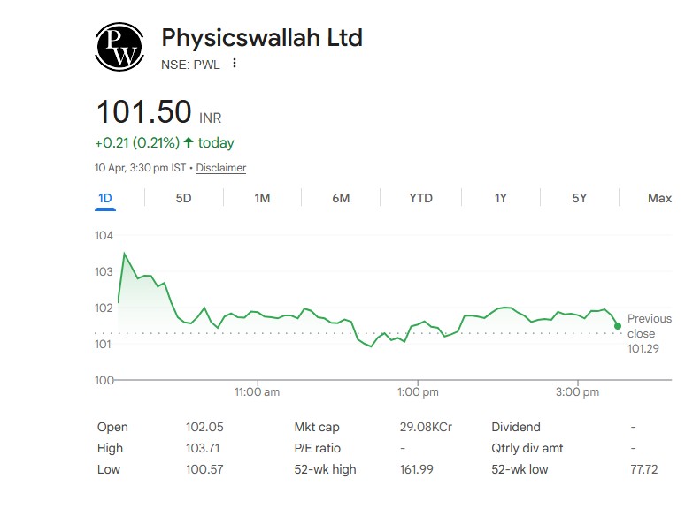 PhysicsWallah Share Price: 101 रुपये से सीधा 35% उछाल? इस चर्चित कंपनी के शेयर को लेकर बाजार में क्यों मचा है हड़कंप! जानिए एक्सपर्ट्स की राय