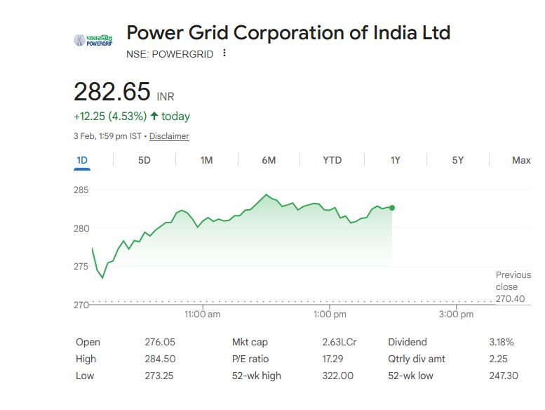 Power Grid Corporation of India Ltd – शेयर विवरण (3 फरवरी 2026)