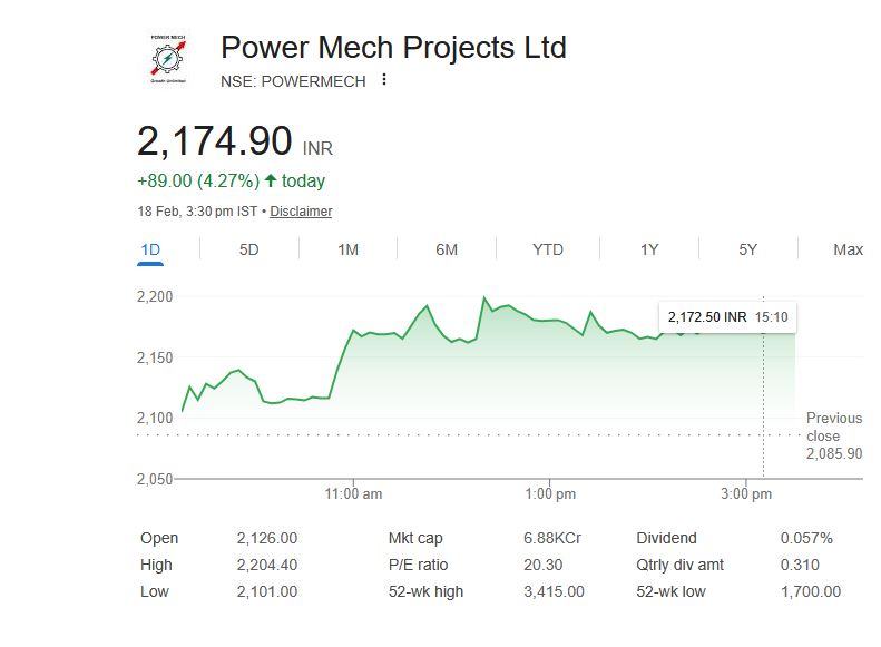 Power Mech Projects Ltd Share: कंपनी ने 1000 करोड़ रुपये के दो बड़े ऑर्डर मिलने की घोषणा की है, जिससे शेयर बाजार में उत्साह फैल गया। इस खबर के बाद बाजार खुलते ही निवेशकों ने तेजी से खरीदारी शुरू की, और कंपनी के स्टॉक्स में उछाल देखा गया। (NSE: POWERMECH, BSE: 539302)