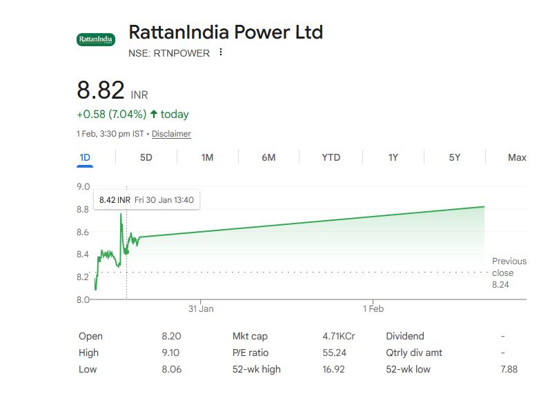 RattanIndia Power Ltd – शेयर जानकारी (1 फरवरी 2026)