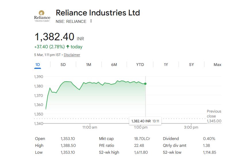 Reliance Industries Ltd – शेयर विवरण (5 मार्च 2025)