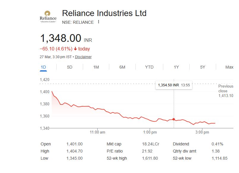 Reliance Industries Limited – स्टॉक विवरण (27 मार्च 2026)