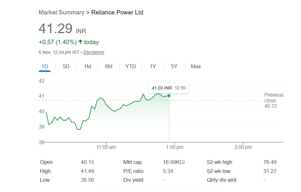 Reliance Power Share अपडेट – (6 नवंबर 2025, 12:54 PM IST)