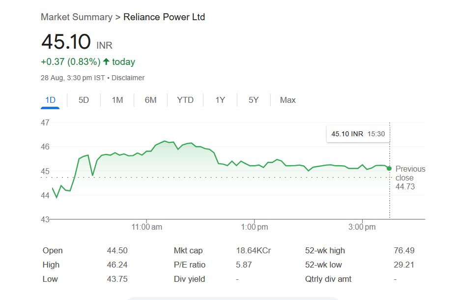 Market Summary- Reliance Power Ltd (28 अगस्त 2025)