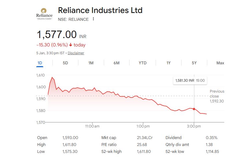 Reliance Industries Ltd (5 जनवरी 2026) – स्टॉक अपडेट